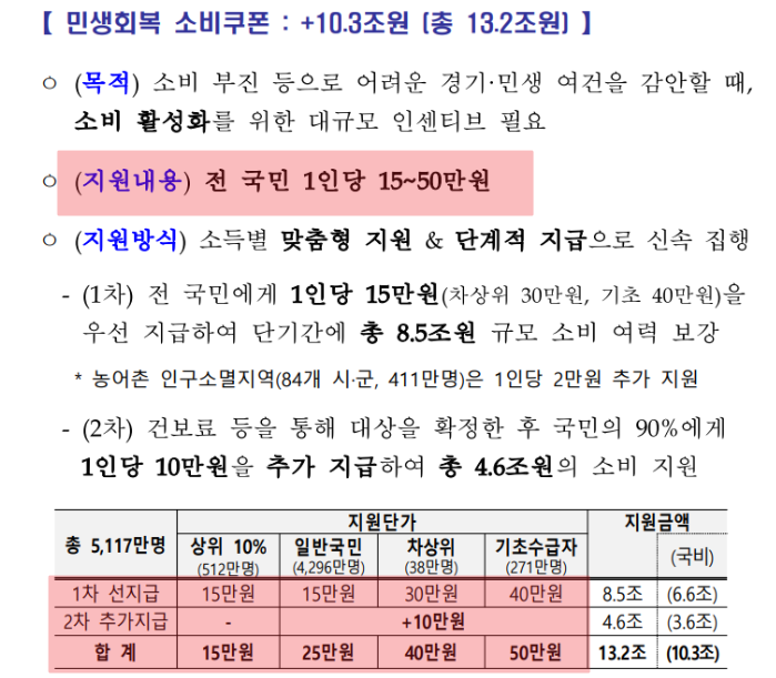- 민생회복지원금은 전 국민을 위한 소비지원금