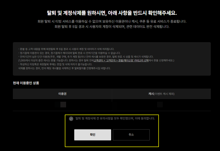 자동결제만 중단하고 싶다면 위 단계까지만 진행하셔도 되지만, 계정을 완전히 삭제하려면 회원탈퇴가 필요합니다.
